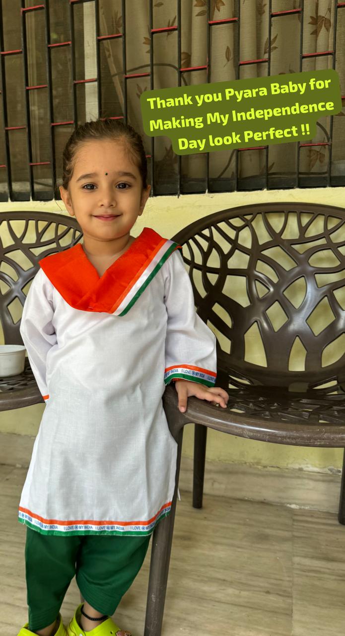 Thank you Pyarababy for the amazing outfit. Fitting and fabric was great 👍 Keep up the good work and quality of your products.. You helped us to make Her Independence Day look Perfect!! 🇮🇳👍