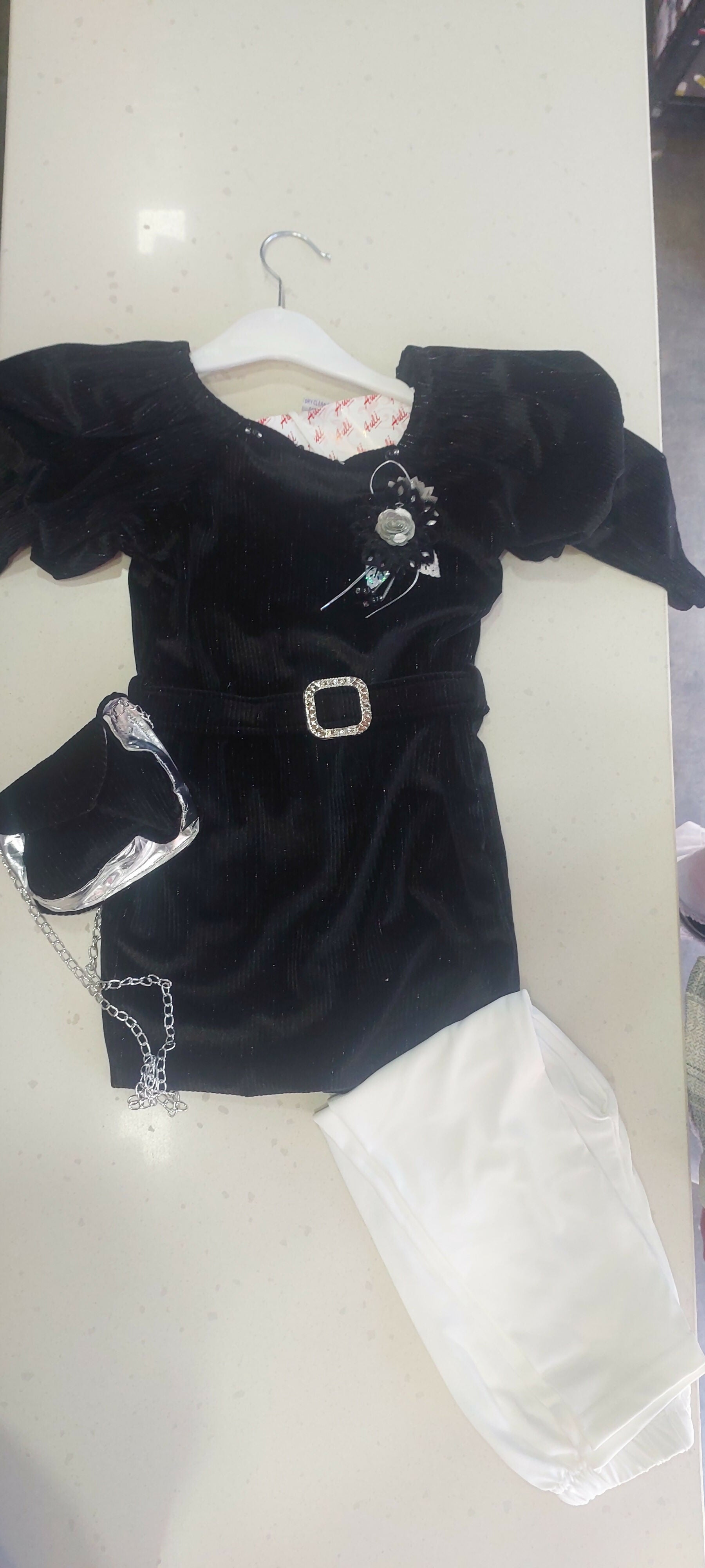 Dress your little one in effortless elegance with this stylish dress set for girls, featuring a soft velvet-look dress, comfy leggings, and a cute matching purse. Perfectly coordinated for special occasions, this set blends comfort with charm.